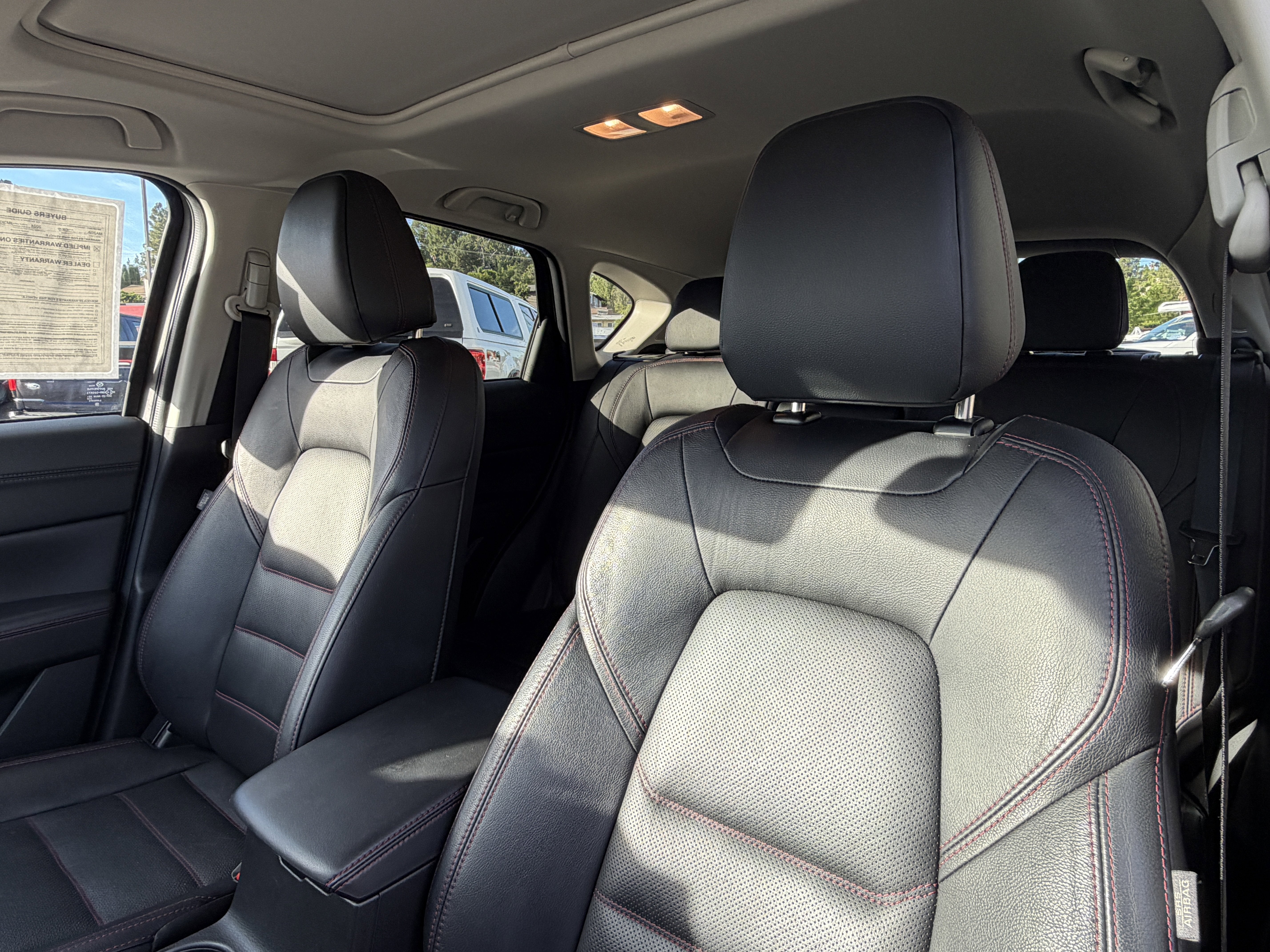 Recent Arrival! CARFAX One-Owner. Clean CARFAX. Odometer is 25044 miles below market average!AppLink/Apple CarPlay and Android Auto, Power Liftgate, Power moonroof, Radio: AM/FM/HD Audio System, SMS Text Msg Audio Delivery & Reply, Wheels: 19 x 7J Aluminum Alloy, 10 Speakers, 4-Wheel Disc Brakes, 4.624 Axle Ratio, ABS brakes, Air Conditioning, Alloy wheels, AM/FM radio, Auto High-beam Headlights, Auto-dimming Rear-View mirror, Automatic temperature control, Brake assist, Bumpers: body-color, Delay-off headlights, Driver door bin, Driver vanity mirror, Dual front impact airbags, Dual front side impact airbags, E911 Automatic Emergency Notification, Electronic Stability Control, Emergency communication system: MAZDA CONNECT, Exterior Parking Camera Rear, Four wheel independent suspension, Front anti-roll bar, Front Bucket Seats, Front Center Armrest w/Storage, Front dual zone A/C, Front reading lights, Fully automatic headlights, Garage door transmitter: HomeLink, Heated Front Bucket Seats, Heated front seats, Illuminated entry, Infotainment System Voice Command, Leather Seat Trim, Leather Shift Knob, Leather steering wheel, Low tire pressure warning, Memory seat, Multifunction Commander Control, Occupant sensing airbag, Outside temperature display, Overhead airbag, Overhead console, Pandora, Panic alarm, Passenger door bin, Passenger vanity mirror, Power door mirrors, Power driver seat, Power passenger seat, Power steering, Power windows, Radio Broadcast Data System Program Information, Radio data system, Rain sensing wipers, Rear anti-roll bar, Rear reading lights, Rear seat center armrest, Rear window defroster, Rear window wiper, Remote keyless entry, Speed control, Speed-sensing steering, Split folding rear seat, Spoiler, Steering wheel mounted audio controls, Tachometer, Telescoping steering wheel, Tilt steering wheel, Traction control, Trip computer, Turn signal indicator mirrors, and Variably intermittent wipers. AppLink/Apple CarPlay and Android Auto, Power Liftgate, Power moonroof, Radio: AM/FM/HD Audio System, SMS Text Msg Audio Delivery & Reply, Wheels: 19 x 7J Aluminum Alloy.Visit us at VistaFord.com, call us at 833-263-6408, or stop by our showroom at 21501 Ventura Blvd., Woodland Hills, CA 91364. The Vista Ford Lincoln team is proud to serve Woodland Hills, Northridge, Thousand Oaks, Canoga Park, and the greater San Fernando Valley area with exceptional vehicles and service since 1974. Vista Ford Lincoln 'A Family Tradition.'2024 Mazda CX-5 2.5 S Carbon Edition