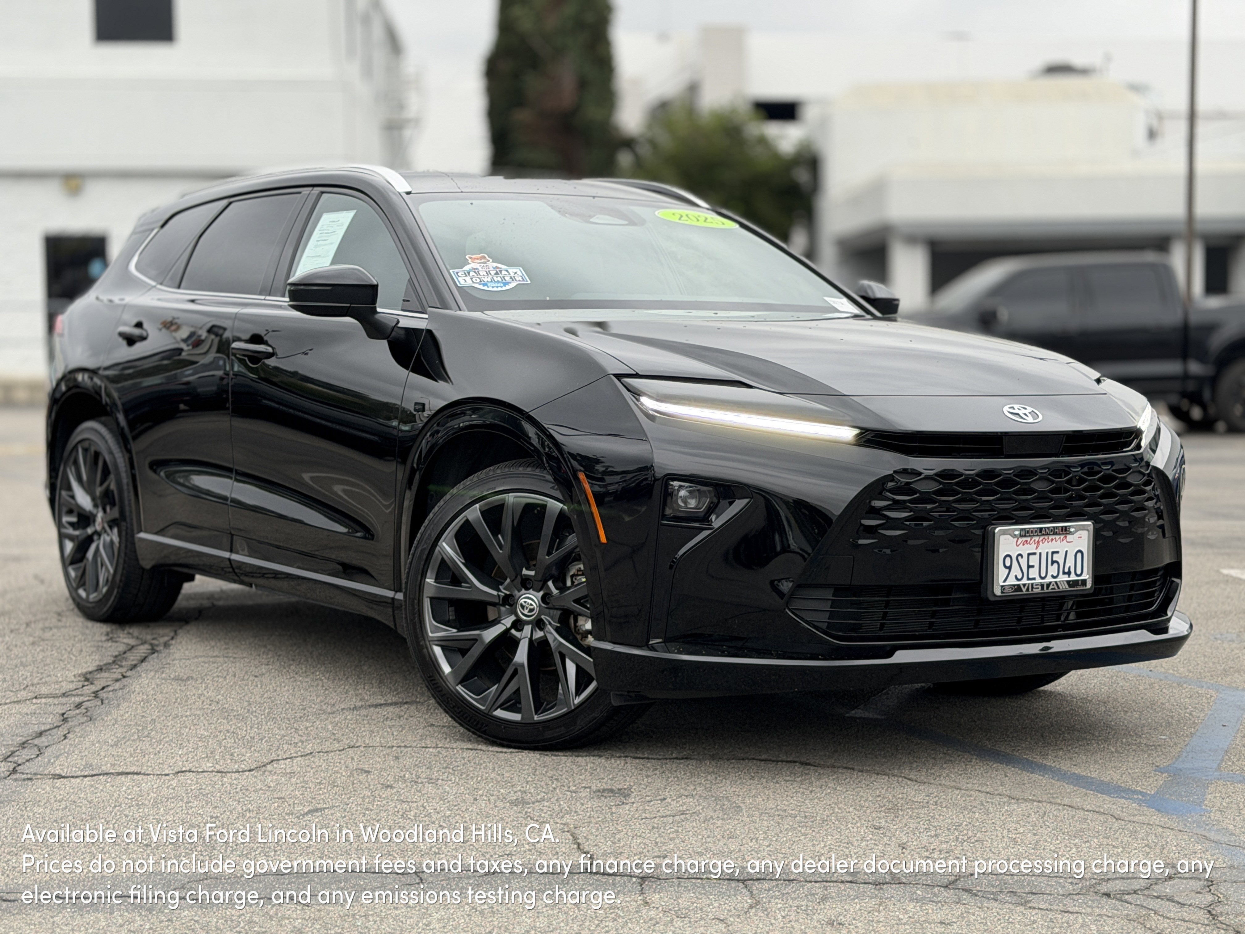 Recent Arrival! CARFAX One-Owner. Clean CARFAX.ABS brakes, Active Cruise Control, Compass, Electronic Stability Control, Front dual zone A/C, Heated & Ventilated Front Bucket Seats, Heated door mirrors, Heated front seats, Heated rear seats, Illuminated entry, Low tire pressure warning, Navigation System, Power Liftgate, Remote keyless entry, Traction control, Wheels: 8.5 x 21 7-Spoke Dark Gray Metallic Alloy, 11 Speakers, 4-Wheel Disc Brakes, Air Conditioning, Alloy wheels, AM/FM radio: SiriusXM, Apple CarPlay/Android Auto, Auto High-beam Headlights, Auto-dimming Rear-View mirror, Automatic temperature control, Brake assist, Bumpers: body-color, Delay-off headlights, Driver door bin, Driver vanity mirror, Dual front impact airbags, Dual front side impact airbags, Emergency communication system: Safety Connect (up to 10-year trial subscription), Exterior Parking Camera Rear, Four wheel independent suspension, Front anti-roll bar, Front Bucket Seats, Front Center Armrest, Front reading lights, Fully automatic headlights, Garage door transmitter: HomeLink, Headlight cleaning, Heated steering wheel, Knee airbag, Leather Shift Knob, Leather steering wheel, Leather-Trimmed Seat Trim, Memory seat, Navigation system: Dynamic Navigation (3-year trial), Occupant sensing airbag, Outside temperature display, Overhead airbag, Overhead console, Panic alarm, Passenger door bin, Passenger vanity mirror, Power door mirrors, Power driver seat, Power passenger seat, Power steering, Power windows, Radio data system, Radio: Toyota Audio Multimedia, Rain sensing wipers, Rear anti-roll bar, Rear reading lights, Rear seat center armrest, Rear window defroster, Rear window wiper, Security system, Speed control, Speed-sensing steering, Split folding rear seat, Spoiler, Steering wheel mounted audio controls, Tachometer, Telescoping steering wheel, Tilt steering wheel, Trip computer, Turn signal indicator mirrors, Variably intermittent wipers, and Ventilated front seats. ABS brakes, Active Cruise Control, Compass, Electronic Stability Control, Front dual zone A/C, Heated & Ventilated Front Bucket Seats, Heated door mirrors, Heated front seats, Heated rear seats, Illuminated entry, Low tire pressure warning, Navigation System, Power Liftgate, Remote keyless entry, Traction control, Wheels: 8.5 x 21 7-Spoke Dark Gray Metallic Alloy.Visit us at VistaFord.com, call us at 833-263-6408, or stop by our showroom at 21501 Ventura Blvd., Woodland Hills, CA 91364. The Vista Ford Lincoln team is proud to serve Woodland Hills, Northridge, Thousand Oaks, Canoga Park, and the greater San Fernando Valley area with exceptional vehicles and service since 1974. Vista Ford Lincoln 'A Family Tradition.'2025 Toyota Crown Signia Limited